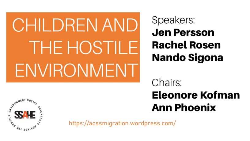 Recording of the recent SSAHE webinar on children and the hostile environment with Jen Persson, Rachel Rosen and Nando Sigona. Hosted by Ann Phoenix and Eleonore Kofman.